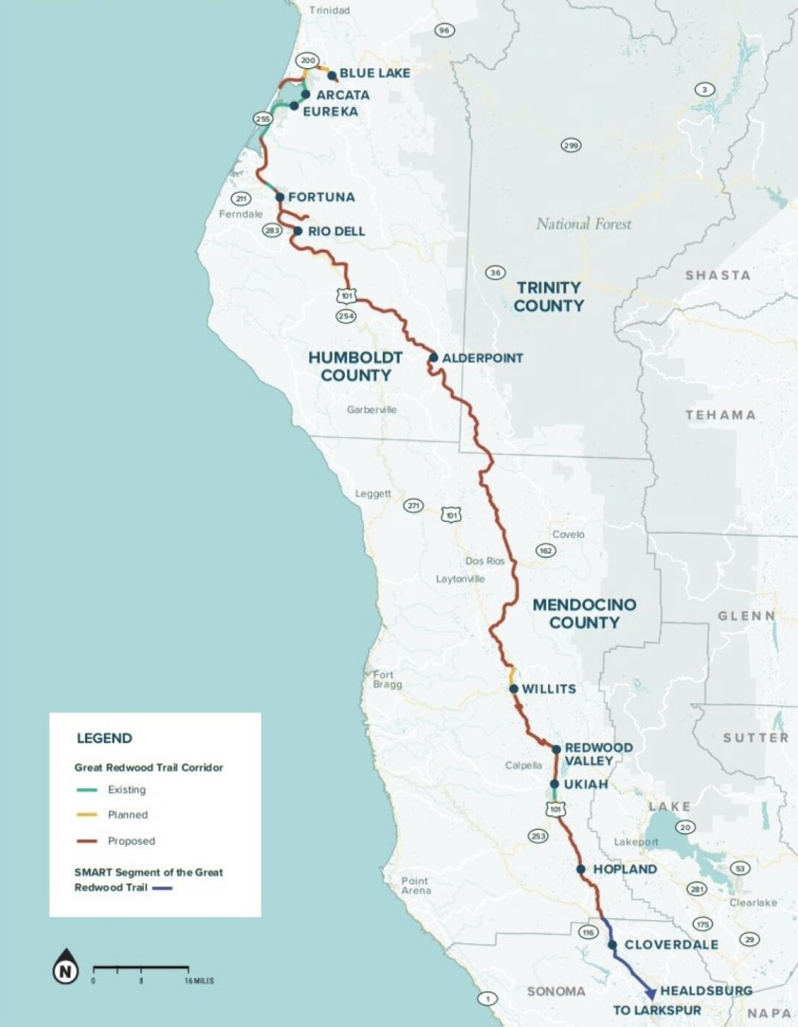 🌲 The Great Redwood Trail Agency has approved its master plan for designing, building, and managing 231 miles of trail through Mendocino, Trinity, and Humboldt counties. When the full Trail is complete, it will stretch over 300 miles across five Northern California counties, from the San Francisco Bay to Humboldt Bay, converting the former Northwestern Pacific Railroad corridor into a multi-use trail through redwood forests, river canyons, farmland, and small coastal towns. Meaning that an old railroad path will now be a recreation path for bikers and hikers a like!